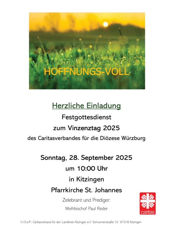 Vinzenztag 2025 – Verleihung des Sozialpreises findet dieses Jahr in Kitzingen statt !