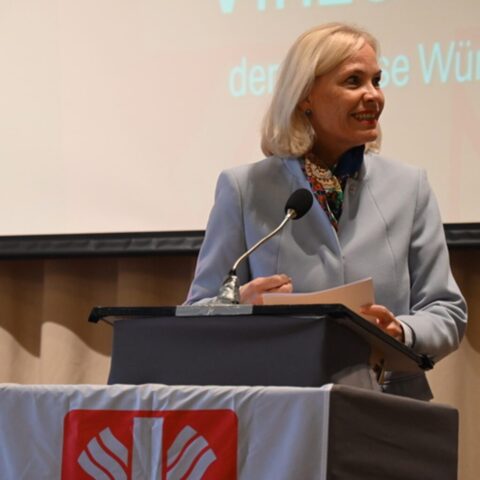 Dr. Susanne Weizendörfer, seit gut einem Jahr Präsidentin der Regierung von Unterfranken, hob in ihrem Grußwort die Bedeutung der Caritas für den sozialen Frieden hervor. „Das gemeinsame Tun stiftet Mitmenschlichkeit“, so Weizendörfer. Der Vinzenzpreis zeige dies stellvertretend für viele Angebote, Initiativen und Projekte. „Ohne Ehrenamt geht es nicht.“ Weizendörfer bescheinigte Unterfranken einen wachen Blick für das soziale Miteinander und würdigte die Bereitschaft, füreinander Verantwortung zu übernehmen.