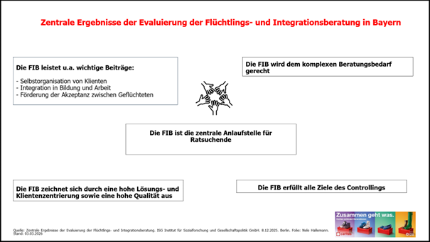 Die unabhängige Evaluierung der Flüchtlings- und Integrationsberatung im Freistaat Bayern (Berlin, 8. Dezember 2025) durch das Institut für Sozialforschung und Gesellschaftspolitik (ISG) im Auftrag des Bayerisches Staatsministerium des Innern, für Sport und Integration bestätigt die hohe Qualität und Wirksamkeit dieses Angebots.