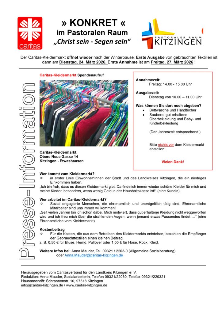 Caritas-Kleidermarkt öffnet wieder ab 24.03.2026